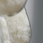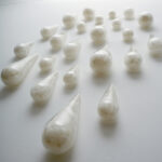 Her work is characterised by a strong visual identity. Common elements include a central composition, often depicting a single object or figure, a concern with material and texture and the use of a limited colour palette, white, black and grey but the dominant use of white is striking.