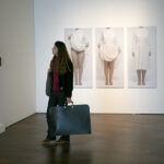 She refers to herself as a female flâneur, she wanders the streets, observing people, watching, absorbing, and filters these sights and sounds. This alchemistic filtering process results in sublime, paired down statements; saying so much but using a minimalist aesthetic. Yet within this apparent simplicity lies the power of her work. The image stays with us, creeps under our skin, penetrates our thoughts, as we turn the work over and over in our mind.