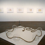 Sleepless, like Vered’s previous exhibitions, functions as a multi-media installation; a collage of mixed media fragments, of texture, colour and form, architecturally placed to set up critical juxtapositions within the ever dominant pure white walls of the white cube gallery space.